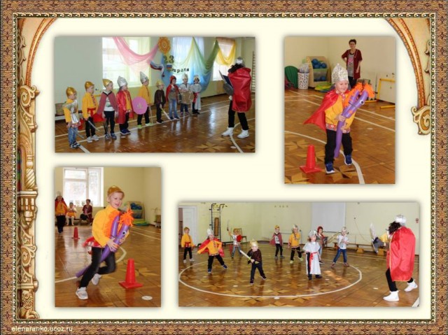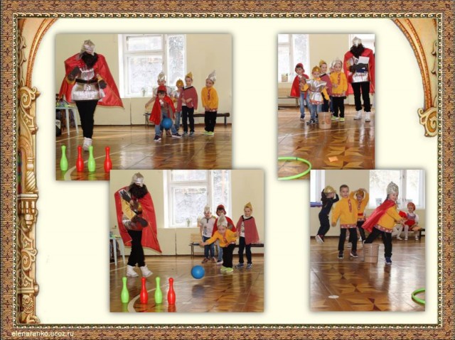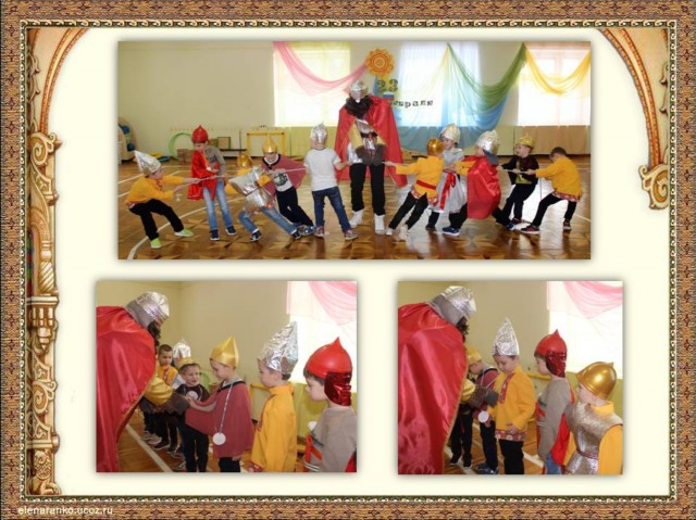 Шлемы, кольчуги, плащи и мечи почти как у настоящих богатырей – так были одеты наши мальчишки в этот день. Они упражнялись в меткости, ловкости, быстроте и силе, устраивали «скачки на богатырских конях», спасали«ЕленПрекрасных из плена Змей Горыныча»,перетягивали канат, а также показали свой острый ум, отвечая на вопросы викторины. И какие же «Богатырские забавы» без песен и плясок русских! И в этом наши богатыри не подкачали!