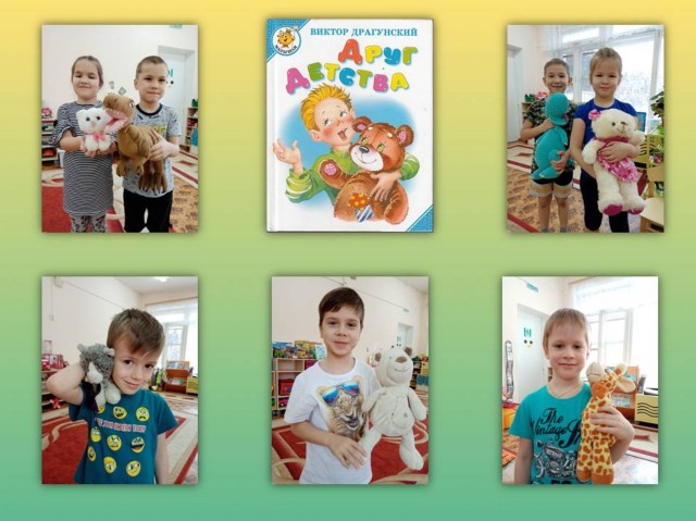 Прослушав рассказ В.Драгунского «Друг детства», дети были настолько впечатлены им, что начали наперебой рассказывать каждый о своем друге. У кого-то это медвежонок, у кого-то котенок, жирафик, даже динозаврики – настоящие «друзья детства».Предложение Ильи о том, чтобы принести своих «друзей» в детский сад, было принято другими детьми с радостью. И на следующее утро, каждый из детей держал в руках свою любимую игрушку.Они начали «знакомить своих друзей» друг с другом,показывать им группу, книгии играть с ними в разные игры.