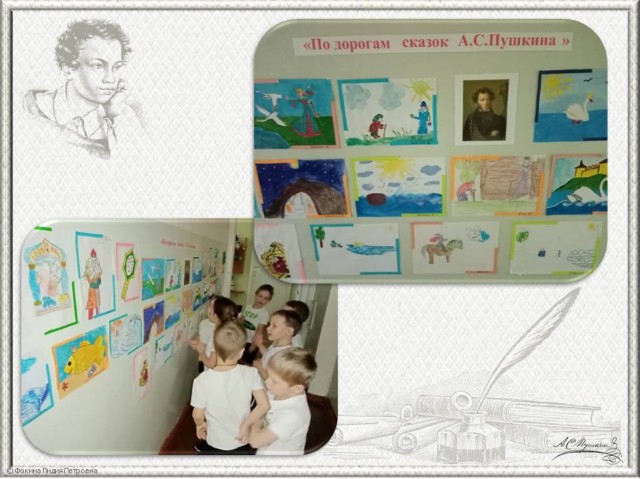 День памяти поэта, прошедший в нашей группе, заинтересовал и родителей. Они с удовольствием приняли участие в выставке рисунков совместного творчества «Путешествие по сказкам А. С. Пушкина».