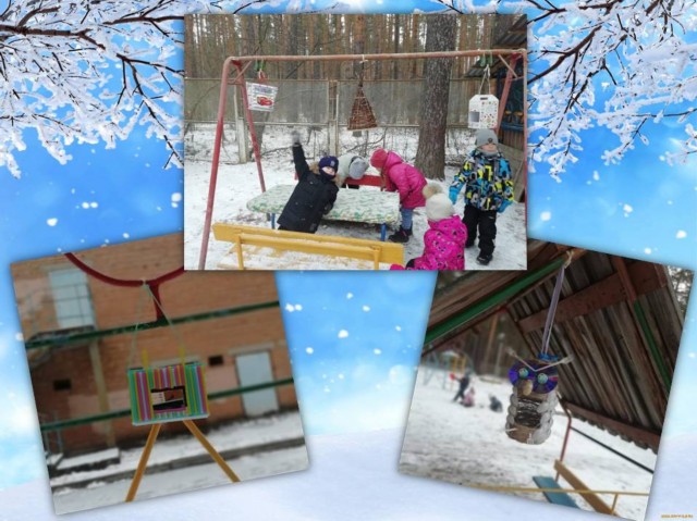 Каждый день, выходя на прогулку, дети первым делом насыпают корм в кормушки. А птички уже тут как тут. Ведь если мы позаботимся о птицах зимой, то и они ответят нам на добро добром и позаботятся о наших лесах и парках!
