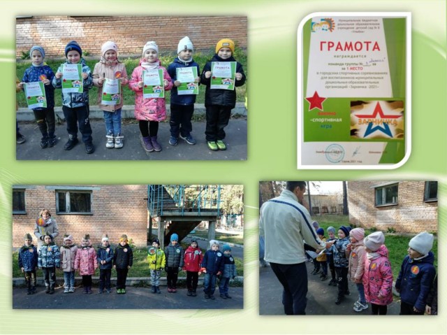 20 октября наши дети принимали участие в военно-спортивной игре «Зарничка». Соревнования начались со строевой подготовки. Капитан команды «Почемучки» - Ярослав Зяблов, давал команды громко и четко, также четко они выполнялись командой. Для детей было организовано несколько эстафет на быстрость, меткость и ловкость: «Передай эстафету», «Меткий стрелок», «Разложи и собери», «Окажи первую помощь» (наклей пластырь). В результате игр, команда «Почемучки» заняла второе почетное место. Поздравляем! Молодцы!